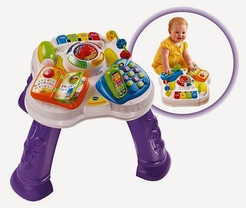 * Mesita parlanchina de Vtech: Es una mesa de actividades, con luces, música teclados, etc, y puede jugar de pie o si se le quitan las patas sentada. La edad recomendada es para más de 9 meses.