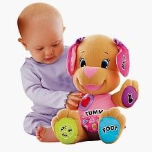 * Perrita educativa de Fisher Price: A Pitusa le encantan los peluches y si tienen música o hablan más todavía. Este en concreto canta, dice los números, las letras, los colores... La edad recomendada es para más de 6 meses. (También hay perrito)
