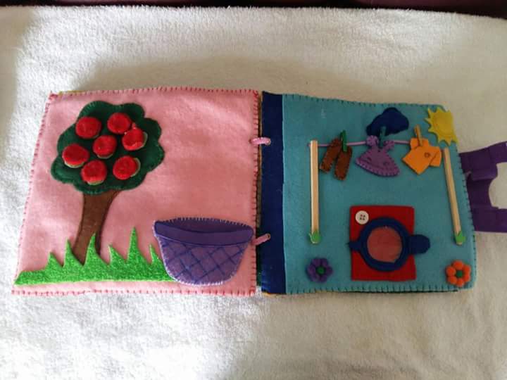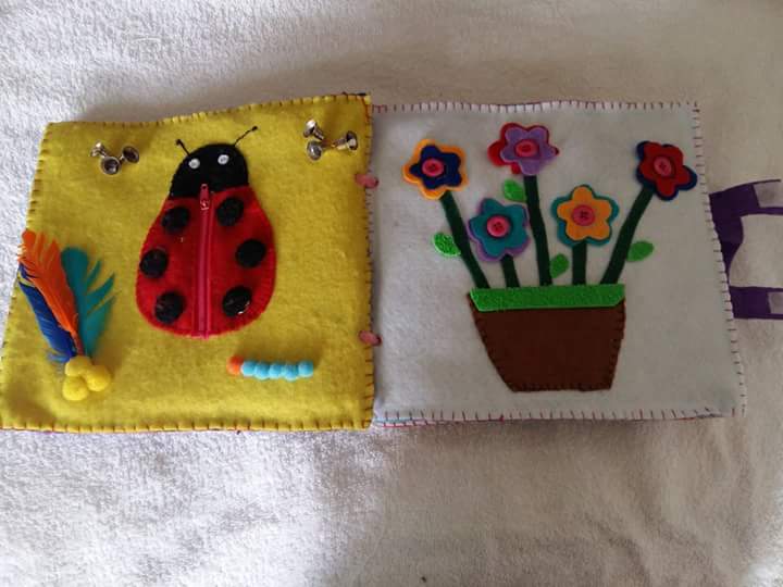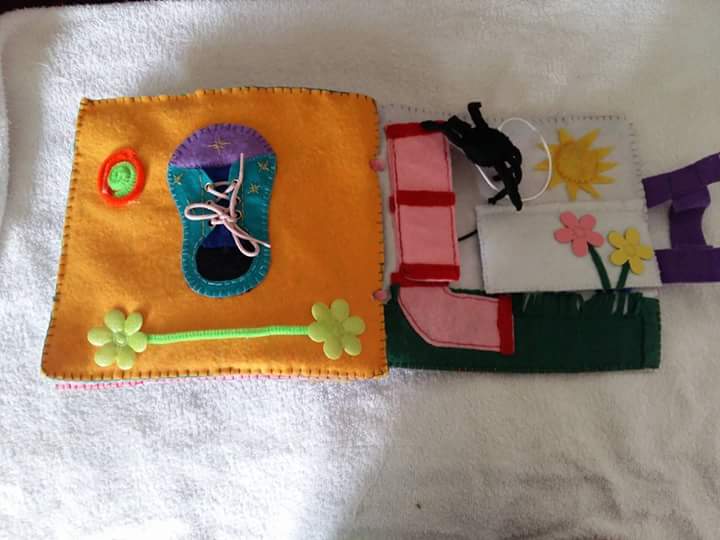 Esta vez, hice mi primer libro sensorial para mi hija de dos años. Buscando en la web he sacado muchas ideas, pero al final he diseñado mi propio libro. Quiero que este libro sea como un recuerdo para mi hija cuando ella sea mayor.