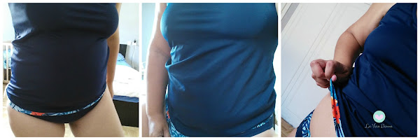 Para resolver mi urgencia, di con Decathlon, había jurado en arameo, que no volvería a comprar un bañador allí, porque tuve uno que salió muy malo, pero encontré este modelo por internet que según la modelo al ser tipo camiseta pues cubre bastante. Si eres delgada y tienes un poquito de tripita este te vale. Yo, lo odié, me sentía como una señorona de 70 años, como yo estoy bien pasada de kilos, pues la barriga no la disimula, no como yo quiero, y mi esposo prácticamente lo quema en cuanto lo vio, pero he sido honesta conmigo y con él, no me atrevo, no me siento cómoda usando bikinis con una barriga enorme y fofa, ademas que no he conseguido uno cómodo para amamantar. Así que lo dicho, este año y por primera vez en mi vida tengo un poquito de complejo y no quiero mostrar mi barriga. Punto. Este año usaré bañador.