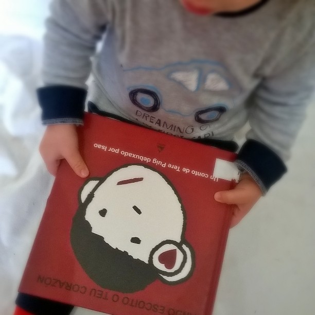 Te cuento porque nos gusto tanto. Lo primero es que note su emoción al leérselo, como logró captar su atención y que a pesar de ser más largo de lo que ellos están acostumbrados a escuchar, atendieron hasta el final. Sus ilustraciones, a pesar de su sencillez les cautivaron, es simplemente la cara del niño de la historia con distintos gestos pero a ellos les encantaron y cada vez que lo ven dicen "nono" (nene o bebé). Y sobre todo la historia, como la madre le enseña a comprender a las personas que le rodean, sus estados de ánimo, solo con escuchar su corazón con un abrazo, observando sus ojos, sus labios, sus pies y sus manos. Una historia perfecta de +Cumio Edicións para enseñarle a comprender las emociones y con una carga de sensibilidad impresionante. ¡Completamente recomendable!