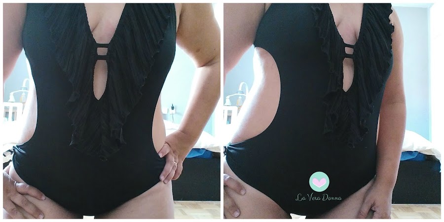 Dado que el bañador de Decatlhon no cumplió mis expectativas en cuanto a belleza, pero si en cuanto a comodidad, decidí ir a por otro. Después de recorrerme un centro comercial entero, no conseguí nada, tampoco una amiga que también quiere un entero este año por las mismas razones, solo que la diferencia es que ella es talla petit, la verdad no lo necesita, pero algunas mujeres somos así y nos creamos complejos por cosas que solo están en nuestra mente, ¿pero quién nos dice que no cuando hemos crecido bombardeadas de que la figura perfecta es la talla 0?. Terminé comprando uno en C and A, tiene esas franjas laterales unicolor y efecto arrugado en la tripa que disimulan bastante, estaba muy bien de precio, pagué 29,90, y resolvió mi problema de complejo y bañador feo.