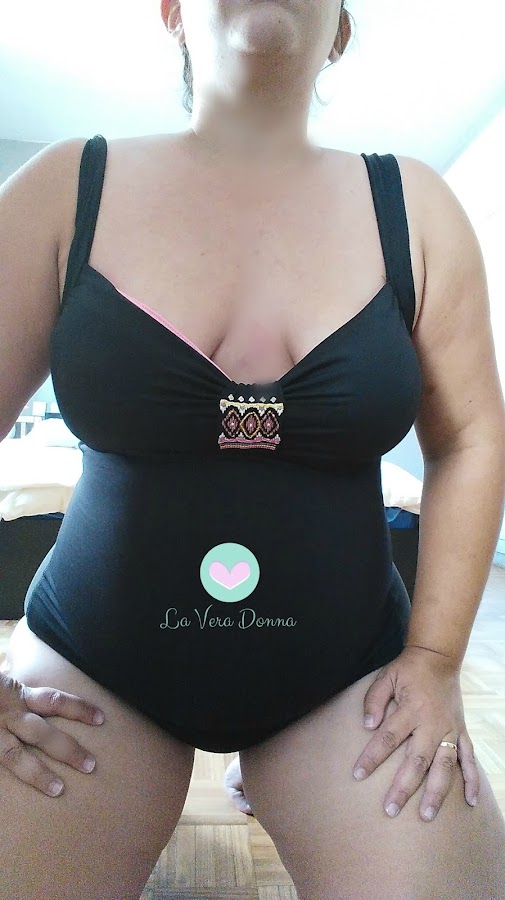 Surtió efecto, conseguí un bañador negro de la marca Diva, costaba 105€, pero como os habéis dado cuenta lo he dejado para última hora, así que he pillado las rebajas, y ese estaba al 60% de descuento, un chollo desde el punto de vista que me quedó mucho mejor que todos los demás, a pesar de no tener control de abdomen ni nada y tiene relleno en el pecho, pero a mi me viene genial porque soy de busto pequeño, sin embargo permite amamantar, además de que el negro, siempre será el color mas favorecedor que existe y que bien sienta, aunque solo sea una ilusión óptica.