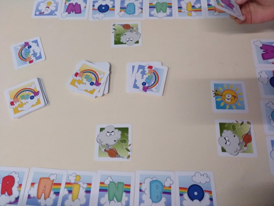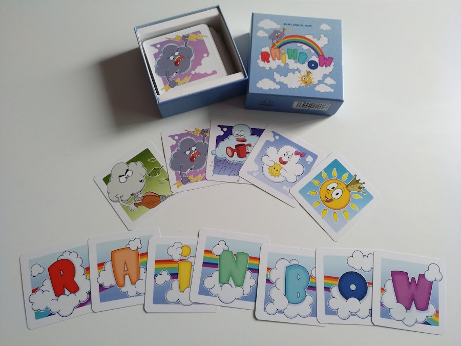 RAINBOW es un juego de cartas diseñado para 2 a 4 jugadores, cada uno de ellos tendrá que formar la palabra arcoíris con sus 7 colores en su cielo, ayudándose del sol, la lluvia y el viento, pero no será nada fácil. Deben tener cuidado, las nubes, el viento y las tormentas pueden impedirlo…