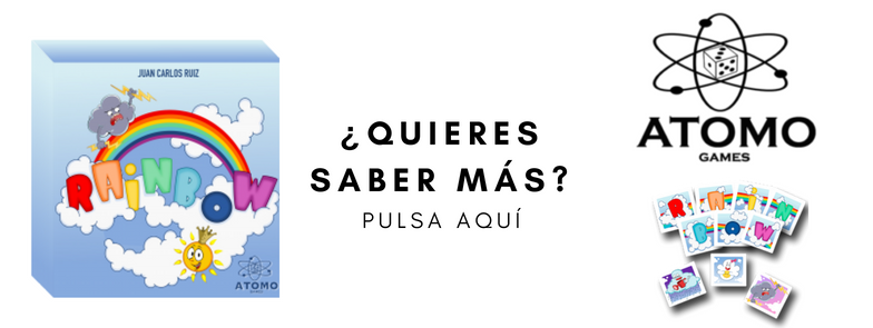 Son juegos con un amplio contenido educativo, ideales para mantener el vínculo y la conexión familiar a través del juego. RAINBOW ha sido diseñado por Juan Carlos Ruíz. Es un juego sencillo y rápido, ideal para los más pequeños, y recomendado a partir de 4 años.