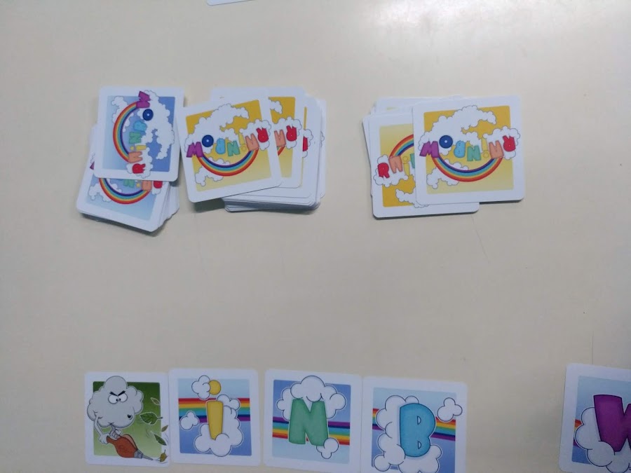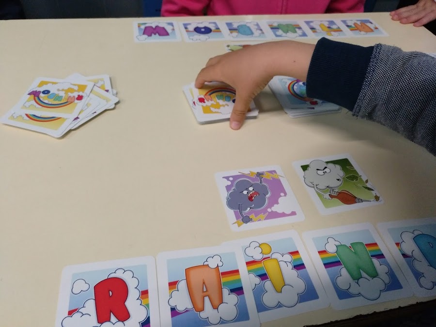NUBE: Se coloca junto una carta de arcoíris, sustituyendo la letra que contiene esa carta e impidiendo que se complete la palabra rainbow.