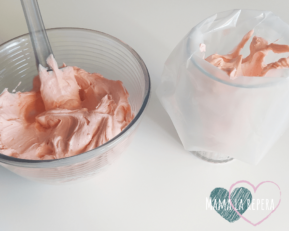 Y antes de despedirme os cuento cómo podéis conservar la buttercream que os ha sobrado, es muy sencillo, solo tenéis que guardarla en un recipiente hermético o bien en la misma manga pastelera que habéis utilizado (bien cerrada y sellada), y la podéis conservar en la nevera durante una semana o bien en el congelador durante un mes aproximadamente. Cuando vayáis a utilizarla nuevamente, solo la tenéis que descongelar a temperatura ambiente.