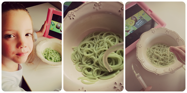 Tanto es así que le comentaba a mis niñas que receta querían que les hiciese con kiwis Zespri, y su respuesta fue contundente ... !!Espaguetis !!. Es lo que tiene tener hijas adictas a la pasta.