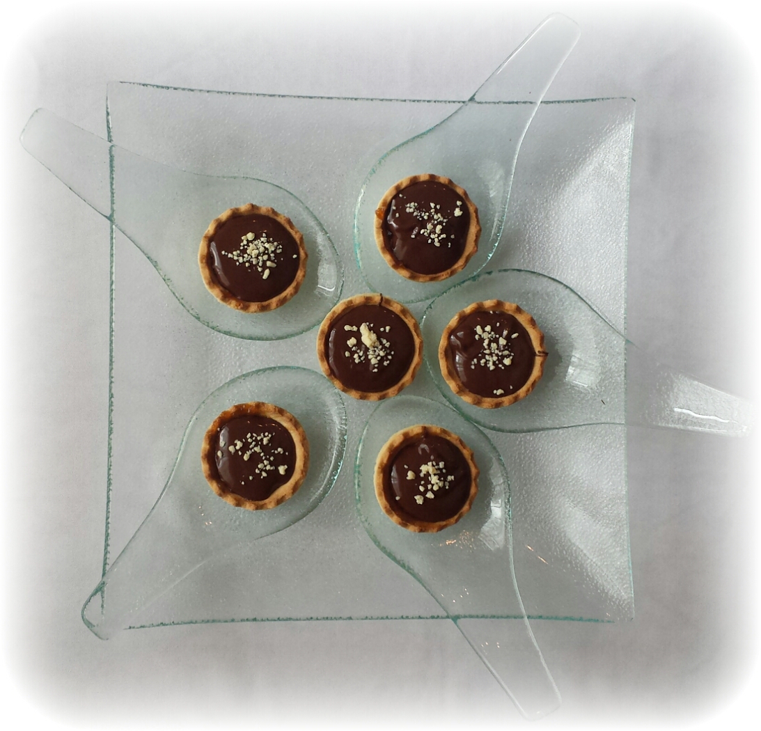 Derretir el chocolate y terminar de rellenar las tartaletas. Si son galletas, cubrirlas por encima con el chocolate.