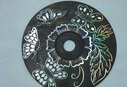 En este otro enlace, nos muestran como decorar un cd utilizando una técnica parecida a la que os mostré hace poco con las ceras, en las que luego rascábamos y hacíamos un dibujo, pues bien, fijaros como con esta técnica podemos hacer cosas tan bonitas como esta.