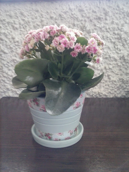 Decidimos meter en la maceta un kalanchoe, planta que nos encanta, y así quedó: