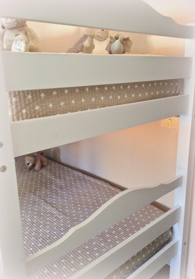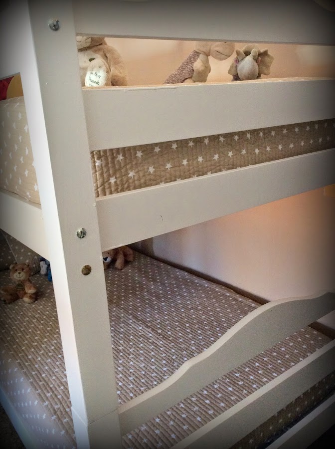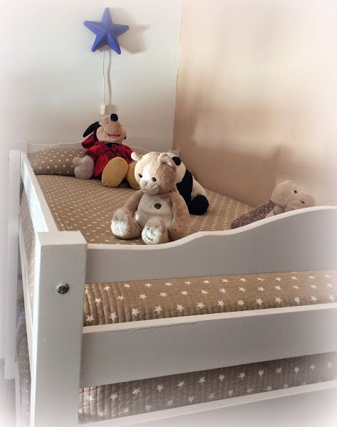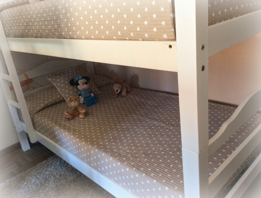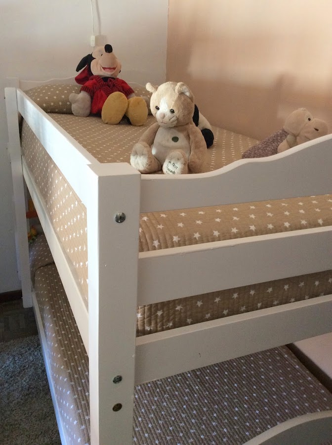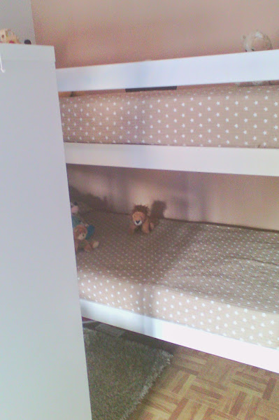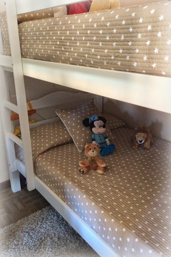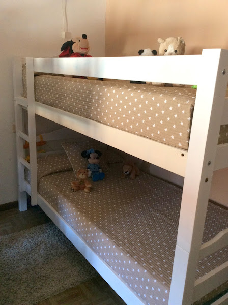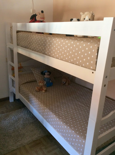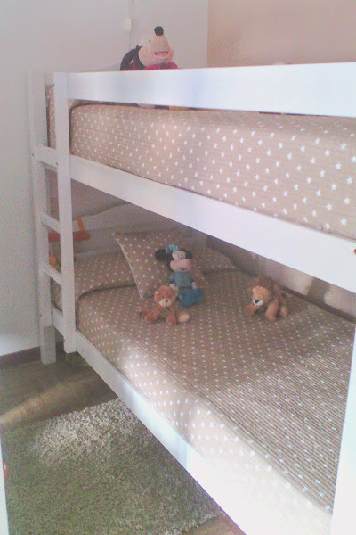 Que sin tener prácticamente ni idea, me meto a cambiar por completo unas literas!!! LA QUE HEMOS LIAO POLLITO!!! Pero poco a poco y con paciencia y ganas de ver por fin la habitación de mis niños tal como la llevo soñando desde el año pasado las acabé!!! Y no puedo estar más contenta y orgullosa del resultado, porque aunque no están perfectas, he sido yo solita quien las ha reformado y esa satisfacción no se paga con nada, jeje. Así que ahora que por fin nos hemos mudado os las enseño, aún me faltan algunos detalles como cojines, unos banderines que les quiero hacer... os iré enseñando los cambios, jeje. A lo que iba que me enrollo...
