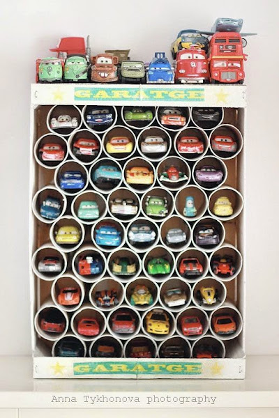 Y como siempre me gusta añadir alguna manualidad que poder hacer con vuestros peques, os dejo también este divertido "garaje", que me ha cautivado nada mas verlo.