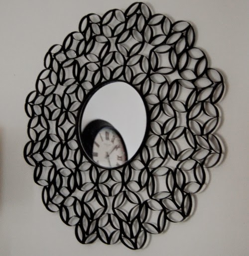 Empezare con este llamativo a la vez que sencillo espejo, realizado con rollos de papel higienico.