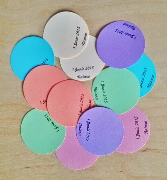 Para las Etiquetas, he dibujado círculos de 5cm de diámetro y he colocado el texto en la mitad inferior.