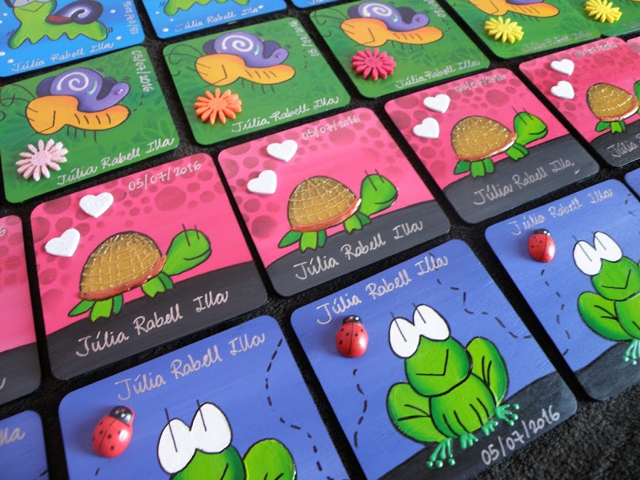 Escogieron 4 modelos distintos e hicimos 9 unidades de cada uno. En total 36 imanes, en los que incorporamos la tortuga, nueva en el repertorio, por petición de la familia.