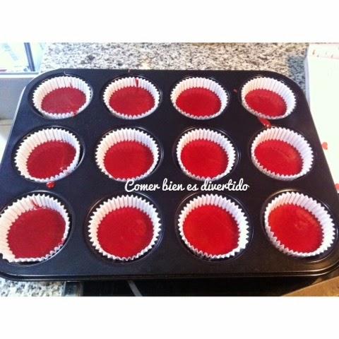 - Repartimos la mezcla en las cápsulas, llenándolas no más de 2/3 y las horneamos a 180 unos 20 minutos o hasta que al pinchar con un palillo este salga limpio.