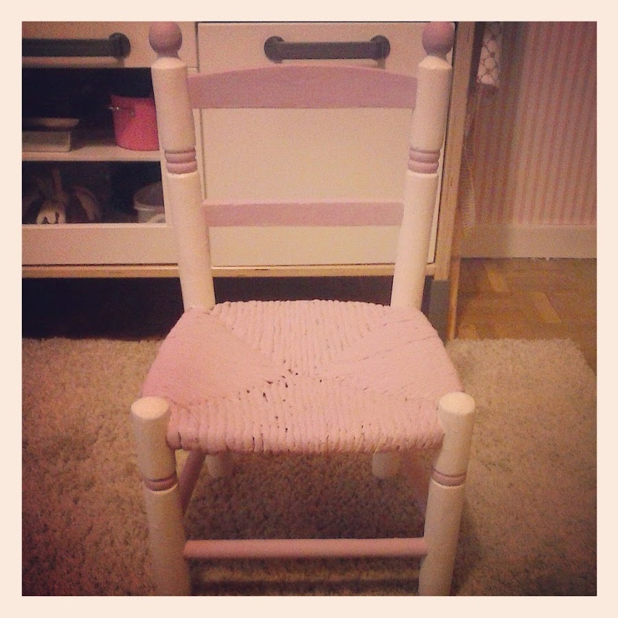 También cómo quedó la sillita de mi nena, que me compraron en 1984 y luego pasó a ser suya. Ya la pinté de blanco en 2007, pocos meses antes de que mi nena naciera. Pero estaba algo estropeada, así que la restauré y quedó preciosa.