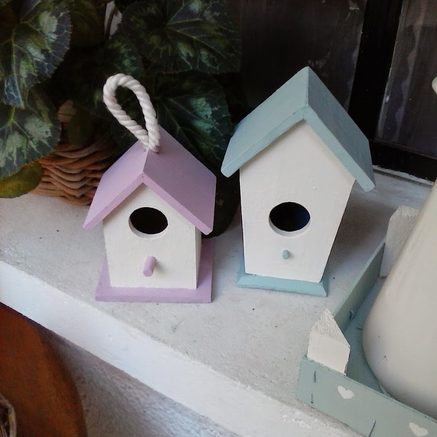 En esta ocasión, mi nena y yo pintamos dos casitas de madera para pajaritos.
