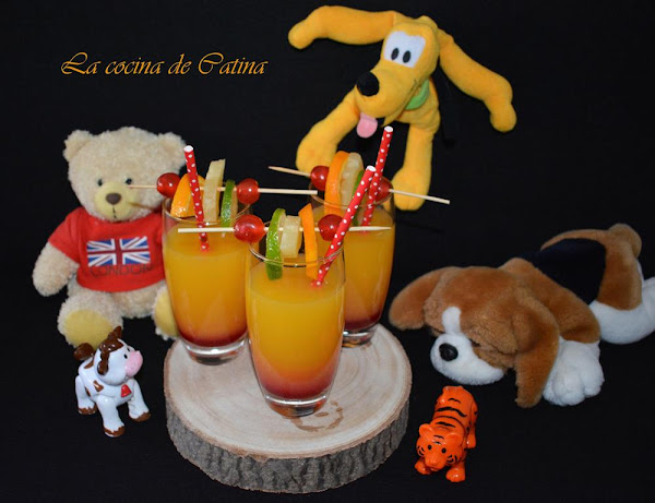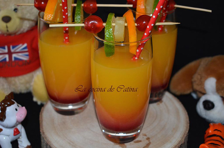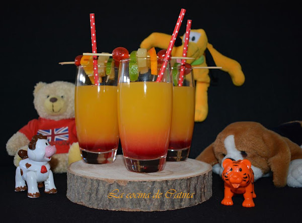 La granadina es un jarabe de color rojo vivo, con sabor a zumo de granadas. se utiliza para colorear, dar sabor y endulzar algunos cócteles fuertes, especialmente el amanecer de tequila. Algunas marcas de granadina tienen un poco de alcohol, para un refresco de niños debemos comprar la que no lo tiene. Con esta receta participo en el reto Tus Recetas de marzo de 2019.