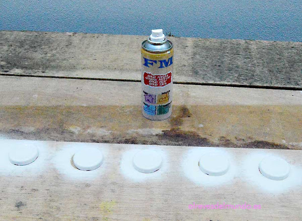 - Pintamos la tapa blanca con pintura en spray, ya que no me gustaba nada la tapa de cuadritos...