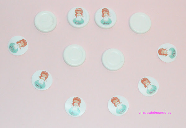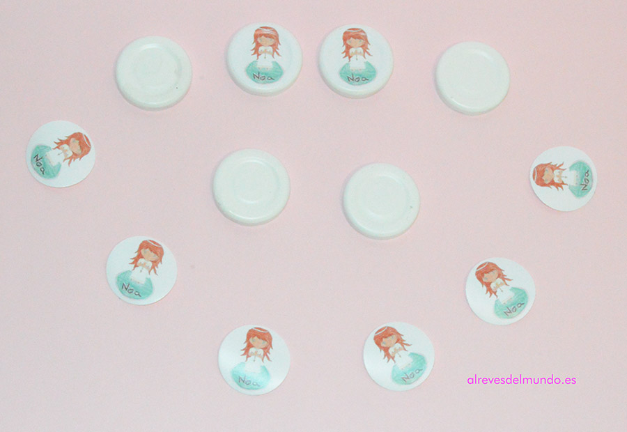 - Una vez que las tapas se hayan secado, pegamos el vinilo con la imagen impresa