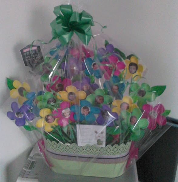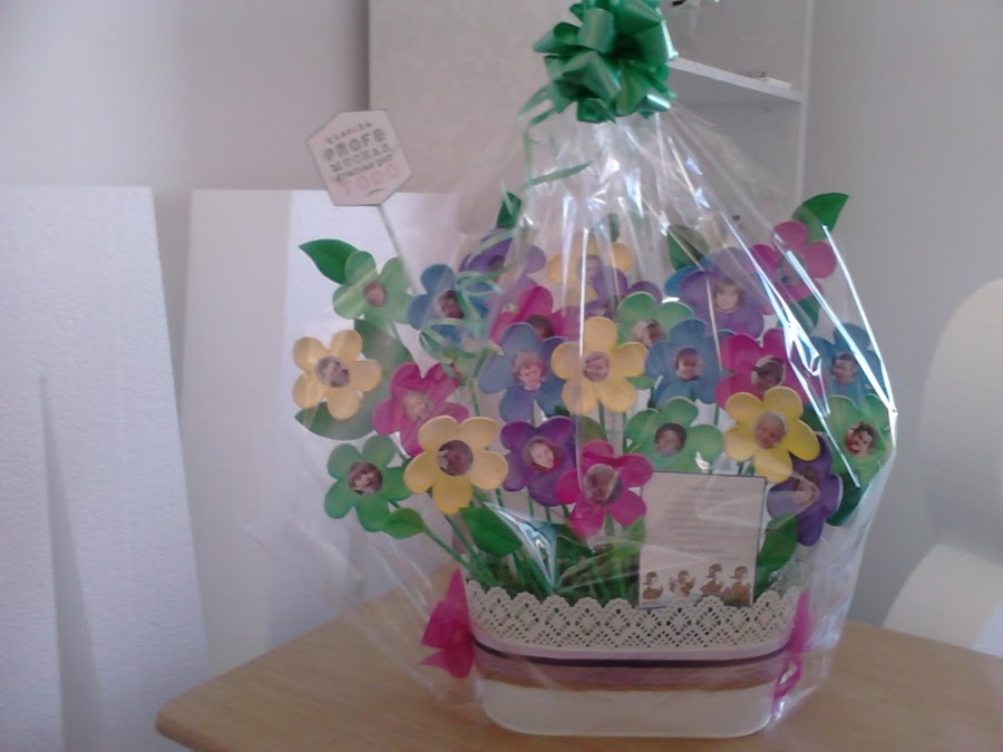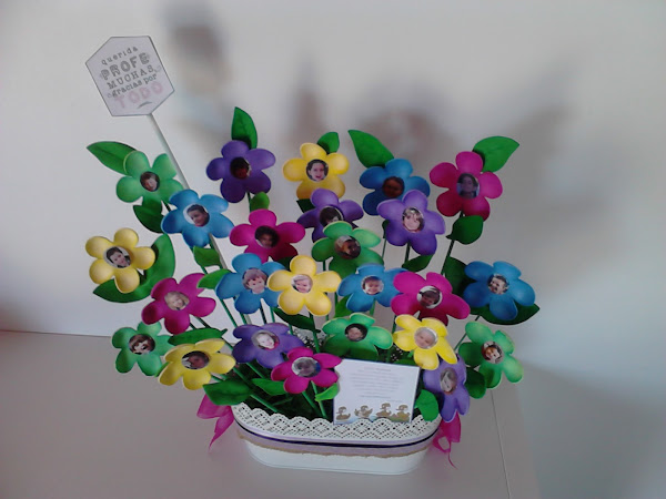 A mi nene, aún le queda un añito en infantil, pero como es don regalón, le encanta tener detalles con las personas a las que aprecia y su maestra es una de ellas, así que como me vio preparando unos maceteros de flores que me encargaron para unos colegios de madrid y me dijo que quería uno para su seño Esther, y la mami lo complació y preparó este pequeño detalle para su señorita.
