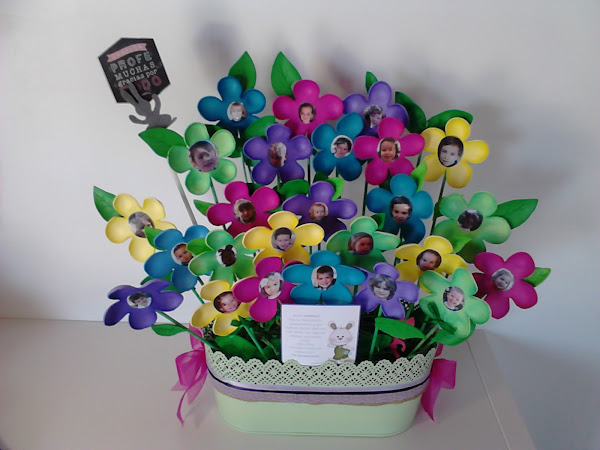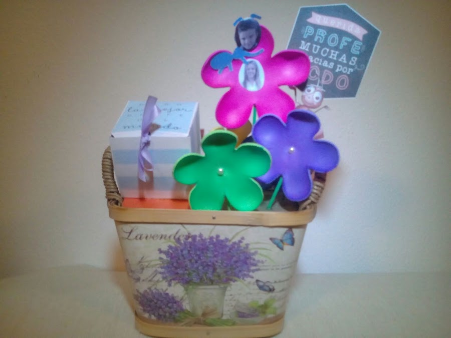 Este tema de los regalos a los maestros es un tema que despierta muchos debates, muchas opiniones encontradas, algunas dicen que no hay por que hacerles regalos a las maestras si van a continuar un curso más con los niños, otras que no hay que agradecerles nada, no es necesario porque es su trabajo, otras que las madres que regalamos somos unas pelotas, etc etc., y la verdad a mi es que me da igual, respeto cada opinión, así como espero que se respete la mía, comprendo que las señoritas están allí con nuestros peques porque es su trabajo, pero también pienso que el cariño que demuestran día a día a nuestros peques, el interés que despiertan en ellos, para que vayan cada mañana con mucha ilusión al cole, eso no está pagado, y como suelo decir, es de bien nacidos ser agradecidos.
