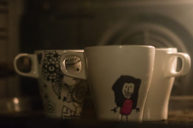 Sunflower ha diseñado varias tazas para sus abuelos. En todas aparece ella con su abuelo o abuela, y algún detalle como una estrella.