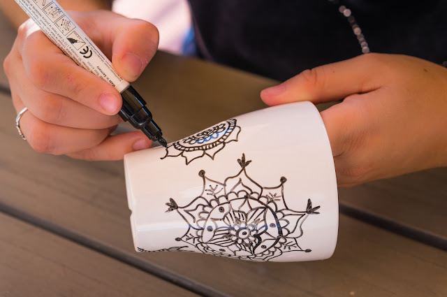 Rotuladores especiales para porcelana (los nuestros son de la marca Pens by Waco y los puedes encontrar en cualquier tienda de bellas artes, su precio ronda los 4€/unidad pero duran muuuucho tiempo y también sirven para pintar en cristal)