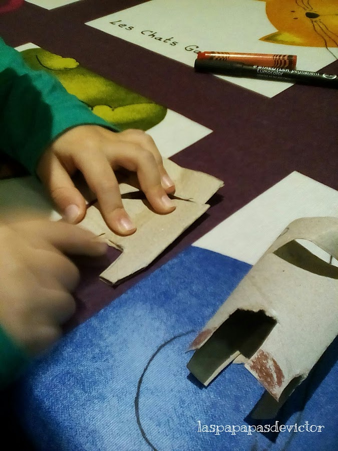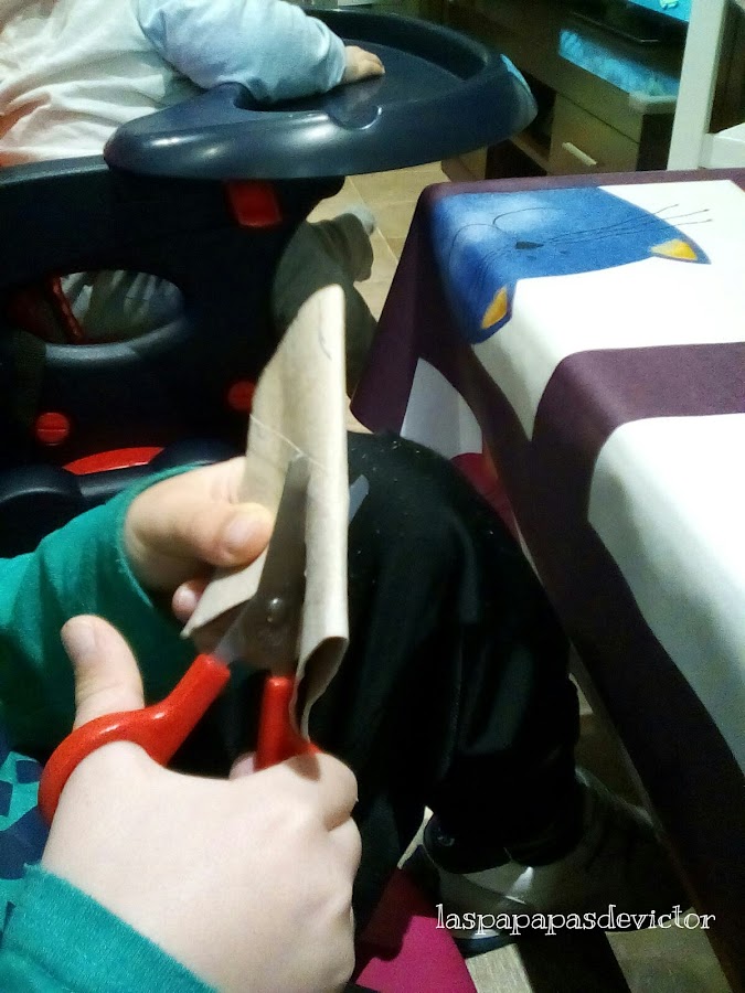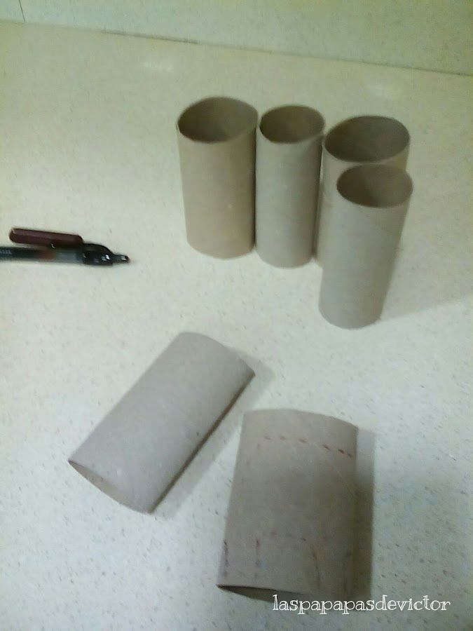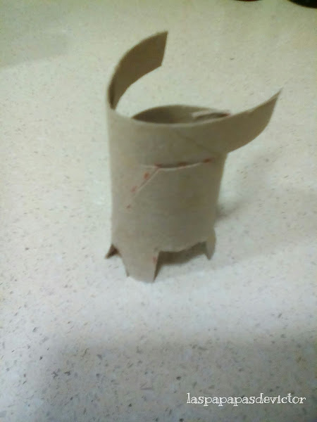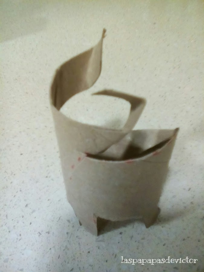 Se trata de "aplastar" el rollo papel wc y a continuación reseguir la mitad que veis tal y como veis en la imagen