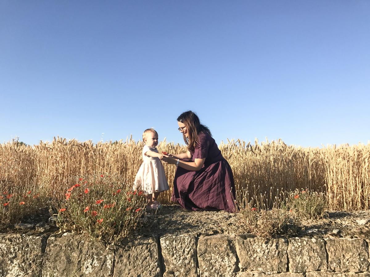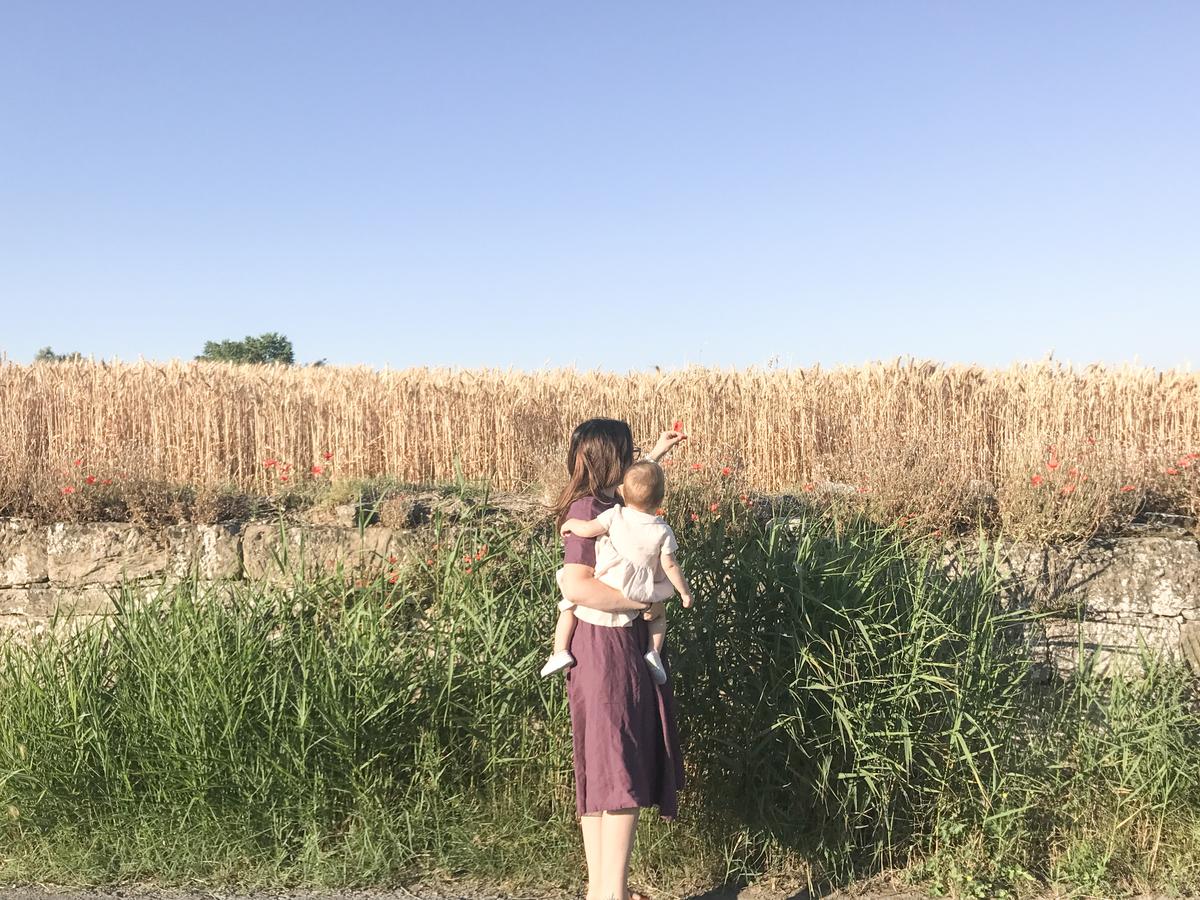 Aunque haya días (y sobre todo noches) que me parezca imposible la expresión de que el tiempo vuela, sé que un día estaré mirando estas fotografías, Valentina ya será mayor, quizás ni tan siquiera viva con nosotros y estaré súper agradecida de tenerlas de recuerdo. Fotografías que te hacen recordar el olor de los campos, la arena de los caminos que se levanta cuando entras con el coche, los murmullos de amore quejándose por vicio porque en realidad le encanta como a mi hacerlo pero le queda más machote no decirlo, a Valentina corriendo por ahí cogiendo todas las amapolas…