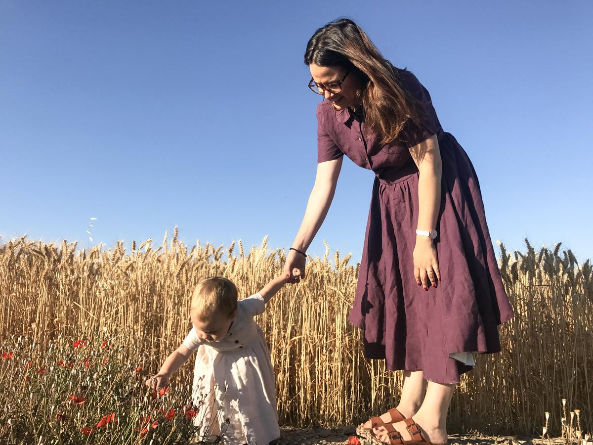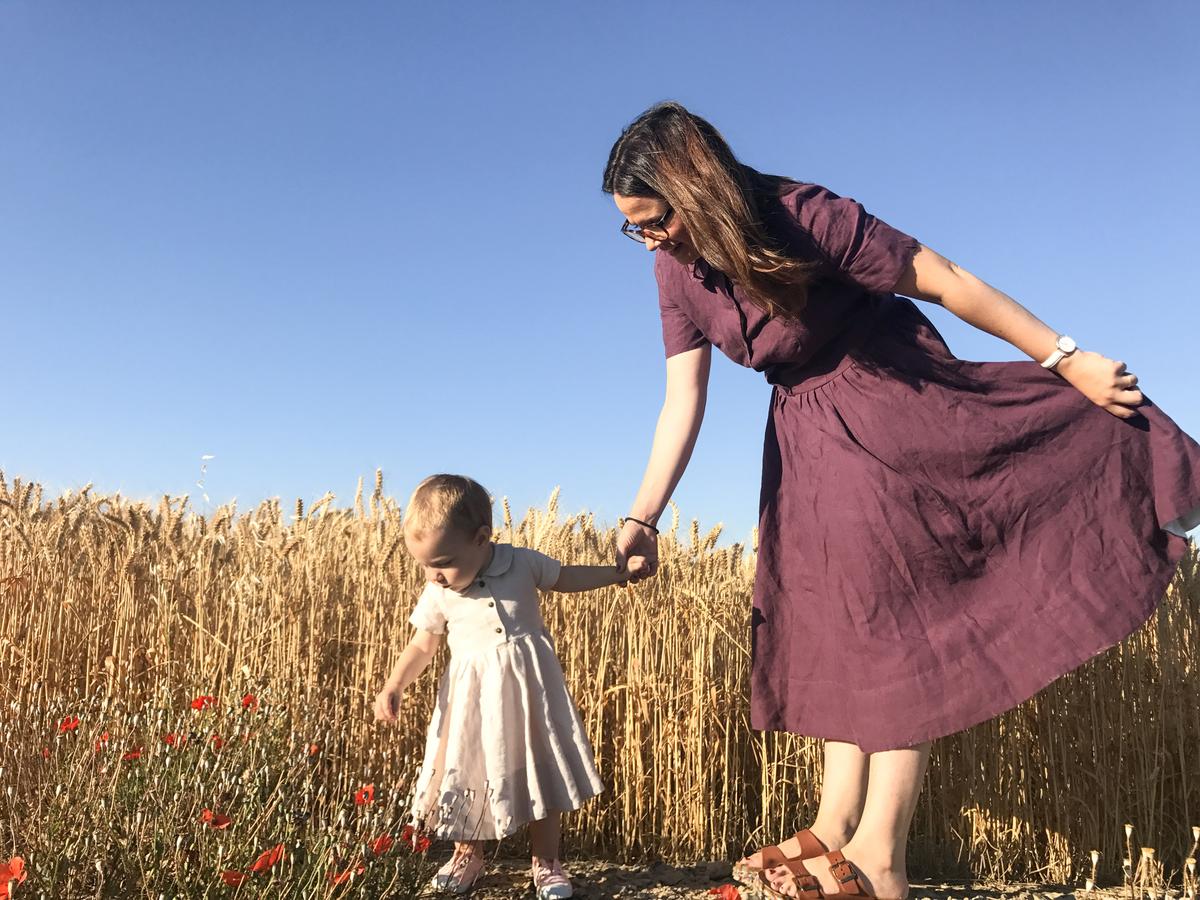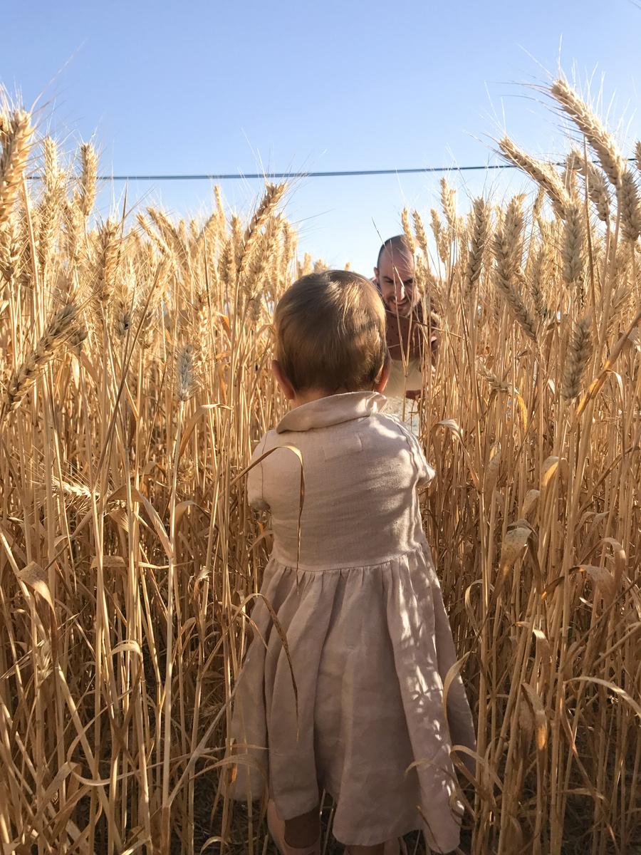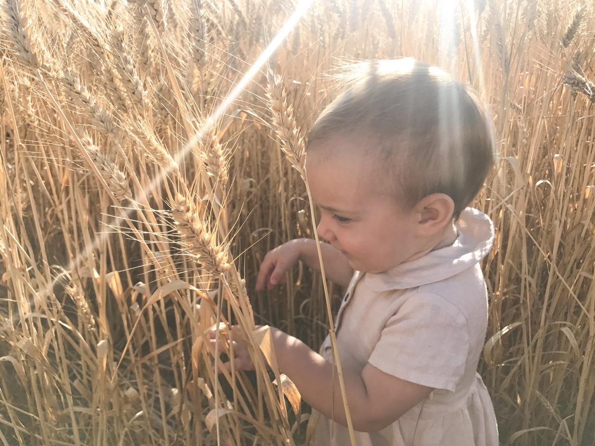 Así que ya sabéis, si queréis haceros con un repor familiar low cost, lo único que tenéis que hacer es coger el coche y poner rumbo a tierras con campos de cereal, unos vestidos bonitos a conjunto, unas flores y cualquier cosa de atrezzo que os pueda servir. Nosotros llevamos el maletero lleno y al final no utilizamos casi nada. Me llevé una silla antigua de mimbre, una maleta vintage, una sábana y algunos peluches para la peque. Pero como siempre, el mejor atrezzo es el que te encuentras en el camino.
