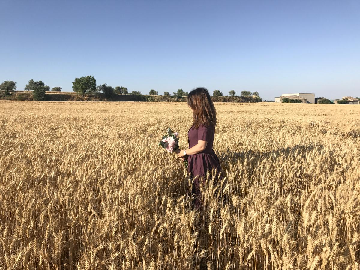 Así fue, como lié al amore, cogí unas cuantas flores frescas, una silla antigua, unos vestidos preciosos que tenía guardados en el armario para una ocasión especial y nos plantamos en los campos de cereal que hay al lado del pueblo.