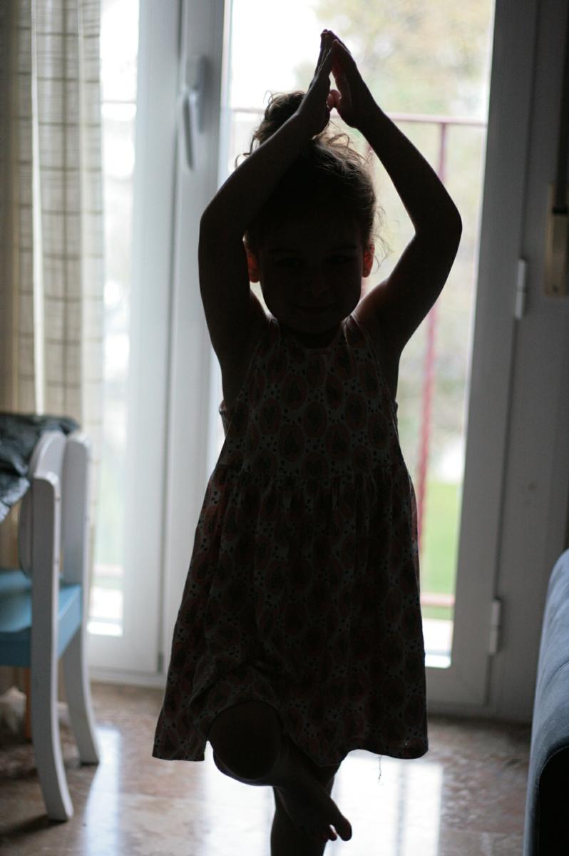La verdad es que el libro llegó como anillo al dedo, porque este año, en el cole de Vera han introducido el yoga y la relajación como herramientas saludables que en determinados momentos del día les ayuda a relajarse y conectar consigo mismos… y desde que empezaron con ello, me hace gracia ver como Vera encuentra en cualquier momento del día, un tiempo genial para mostrarnos algunas de las posturas que ha aprendido o para practicar ella solita. La verdad es que este tipo de iniciativas me parecen geniales y más aún, en la Escuela Pública, porque además de resultar motivador para los chicos/as, supone una herramienta increíble para su vida.