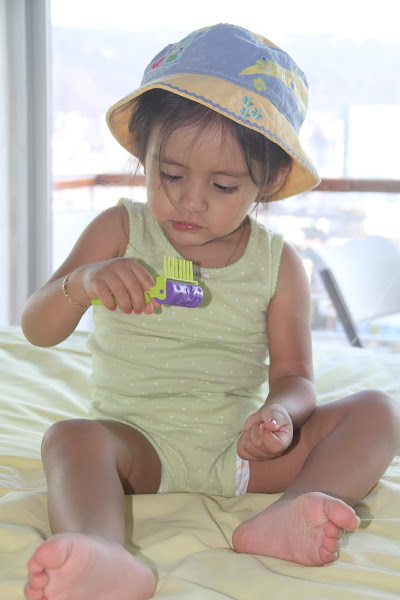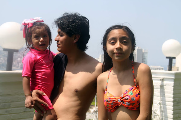 Teníamos un poco de miedo de meter a Isa a la piscina. Nuestras vacaciones de Diciembre fueron una pesadilla pues Isa iba enferma y conforme pasaron los días todo se fue complicando. Como nuevamente Isa había estado enferma de la gripa, temíamos que de nuevo todo se complicara. De hecho habíamos decidido desistir del viaje si Isa continuaba enferma, pero fue mejorando al paso de los días y la playa le cayó de maravilla.