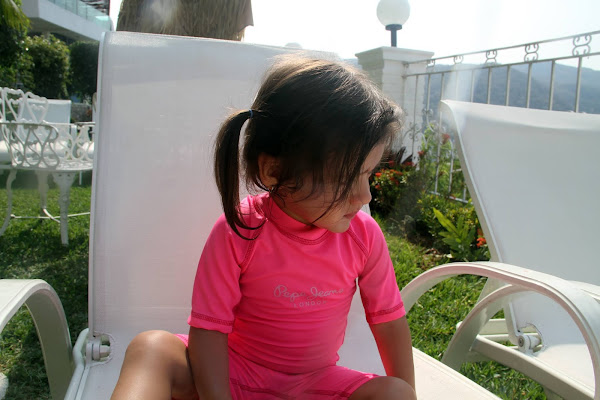 Ya se imaginarán, ambas chiquillas disfrutaron en exceso la piscina. No querían salir de ella. Eso sí, Isabelita no quería utilizar los flotadores ni el salvavidas, sólo quería estar en brazos de todos.