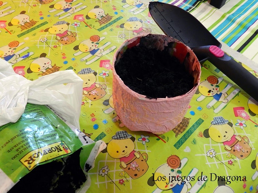 Bien, pues dicho esto comprenderéis que tengo pocas (ninguna) maceta para decorar, así que me dije... "¿y si aprovecho que es primavera, que en el cole están dando las plantitas y animales y preparamos una maceta C y yo?" Pues esa es mi "trampilla" de este mes y es que C ha hecho el trabajo, jejeje!!