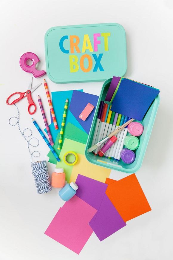 Pequeños botes o cajas para guardar lapices,pinturas,ceras,rotuladores,plastilina y elementos varios de pequeño tamaño como pegatinas, pompones…