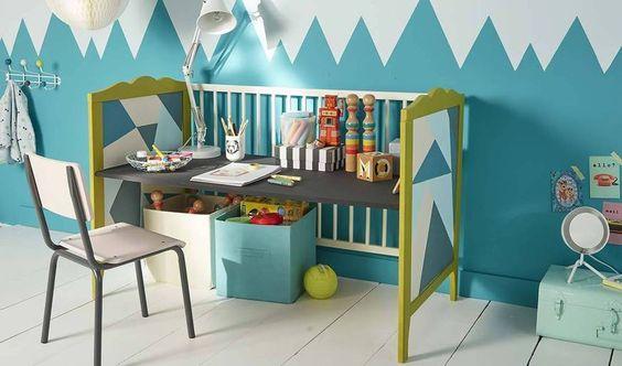 Aquí va otra propuesta, de lo más original. ¿Porque nos gusta? , porque conlleva crear reciclando una cuna. Se nos ocurre que los laterales pueden servir para hacer una pizarra para tiza de un lado y del otro una magnética (hay pintura para eso).