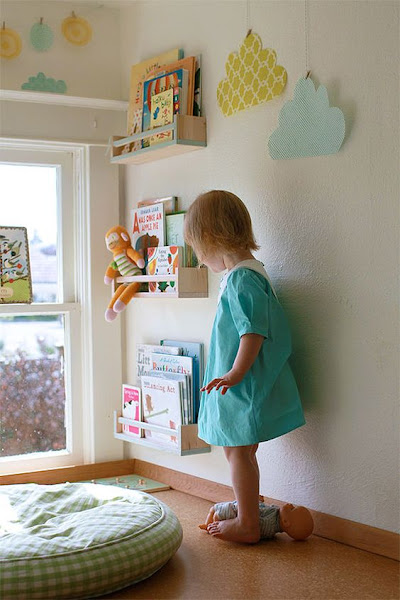 libros y cuentos y es por eso que he estoy pensando en crearle un rincón de lectura en su habitación para fomentarle este hábito.Como bien sabéis soy una amante de la filosofía Montessori y es por eso que nuestra "mini biblioteca" la voy a querer organizar siguiendo sus premisas.