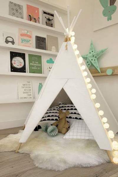 Es importante que el espacio que elijamos esté bien iluminado (si puede ser luz natural mejor que mejor), y que tenga algo dónde poder sentarse a leer, ya sea una silla, una alfombra con cojines, un puf o porque no, un tipi!