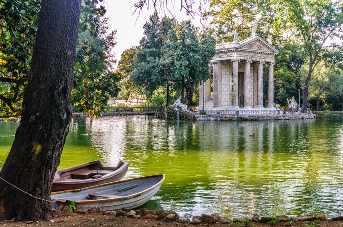 El templo de Esculapio, es el lago de Villa Borghese. Una familia muy simpática alquila sus barcas a buen precio, para que puedas darte un paseo agradable en familia y disfrutar del placer de flotar y observar las bandadas de patos y aves que viven por allí.