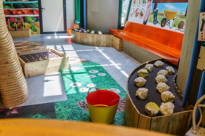 Las opciones son múltiples; desde jugar con el agua, explorar con la física, los sentidos, a jugar en la cocina, en el supermercado (totalmente realista), el banco (donde fabrican hasta su propio dinero), el huerto,?