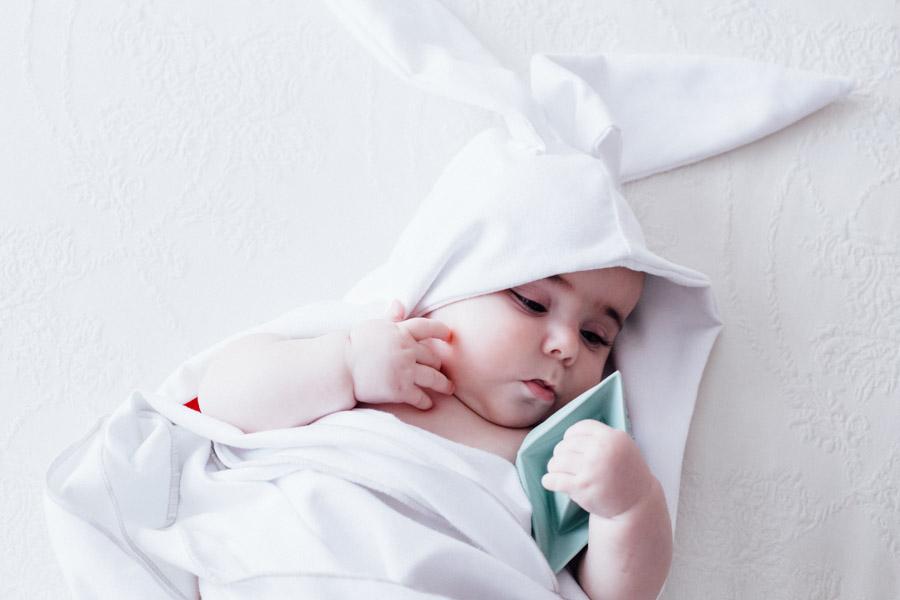 4. Ten lista la toalla. Cojo su toalla de baño y la saco rápido hacía su habitación. Allí es bueno que tenga una temperatura agradable para que los bebés no cojan frío. La seco bien y con mucho cuidado todos los pliegues, y le pongo las cremas de pañal y de cuerpo.