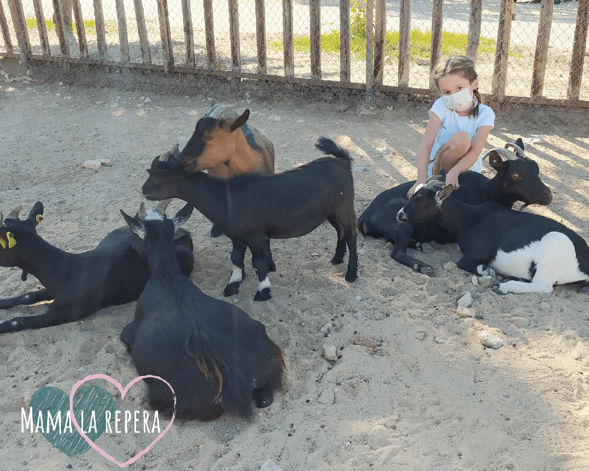 En esta ocasión no hemos ido a la exhibición de las aves rapaces por la situación en la que estamos con la pandemia (no todo el mundo respeta las distancias ni lleva la mascarilla puesta), si a esto le añadimos que nos coincidía en una hora bastante crítica de sol e íbamos con la bebé, decidimos dejarlo pendiente para la próxima visita, aunque sí que asistimos en nuestra primera visita al safari y merece la pena ver la exhibición.Y por último en lo que a animales se refiere, fuimos a ver la zona de los mansos, osea las cabras. Creo que fue sin duda el lugar favorito de niñarepera. Y es que el poder tener contacto directo con los animales, cogerles, acariciarles, darles de comer, etc., resulta muy emocionante para los niños en general, y para mí en particular.