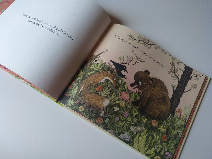 Es un maravilloso álbum ilustrado repleto de expresivas ilustraciones que acompañan un texto corto y sencillo que hace reflexionar, indudablemente, a pequeños y mayores. Las ilustraciones repletas de detalles nos transportan al bosque, es imposible no acabar enamorándose, hablan por sí solas.