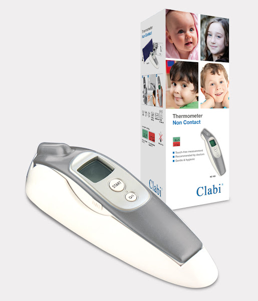 No sé vosotros, pero yo aprecio mucho mi vida, y teniendo un niño con el sueño ultraligero no está la cosa como para andar moelstando y jugándotela cuando le quieres tomar la temperatura, así que mi padre me dejó su termómetro sin contacto, que usan en los hospitales, y oye, mano de santo. Se lo enfoco en la frente, espero 3 segundos y me dice la temperatura, así, ¡sin dramas innecesarios!