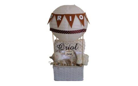 Original y preciosa cesta globo ideal como regalo para el recién nacido o como regalo a la futura mamá en una Babyshower.