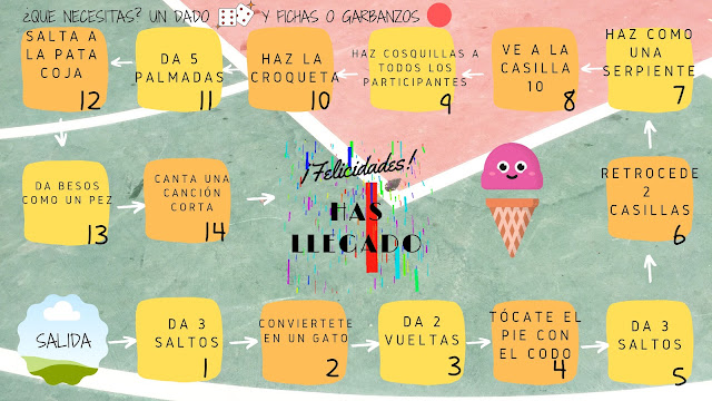 Para psicomotricidad esta seman os dejamos con un tablero que ha creado la seño Marta y con un dado tenéis que ir realizando las instrucciones que os da.